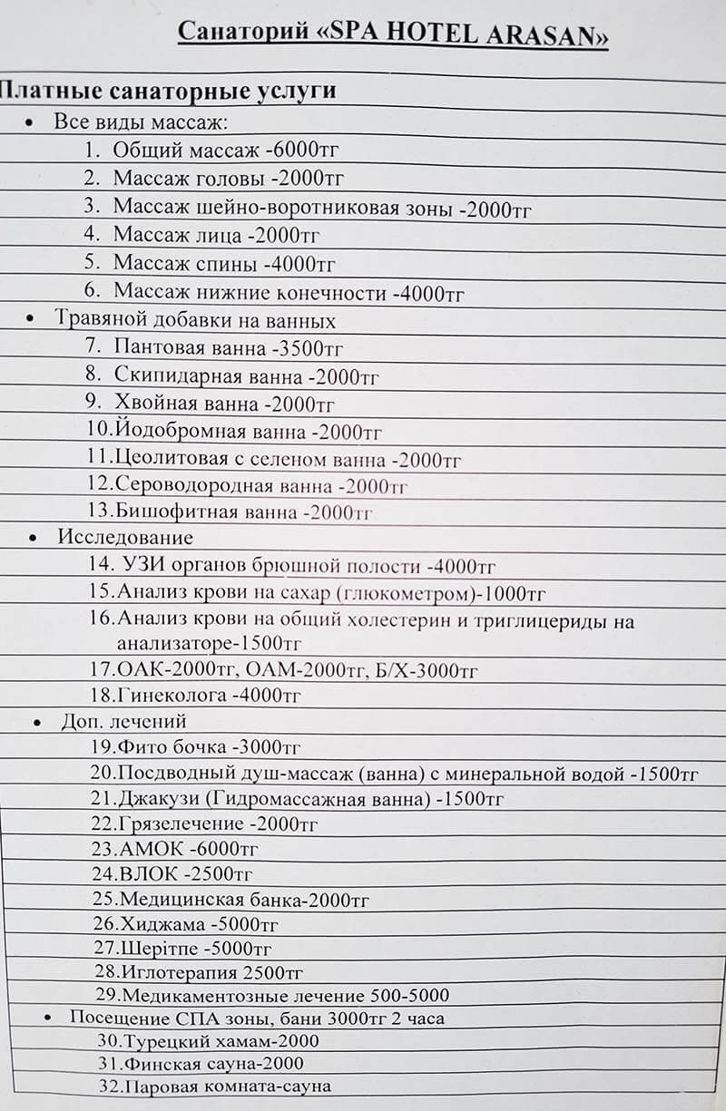 Санаторий Сарыагаш, лечение, питание, путевки